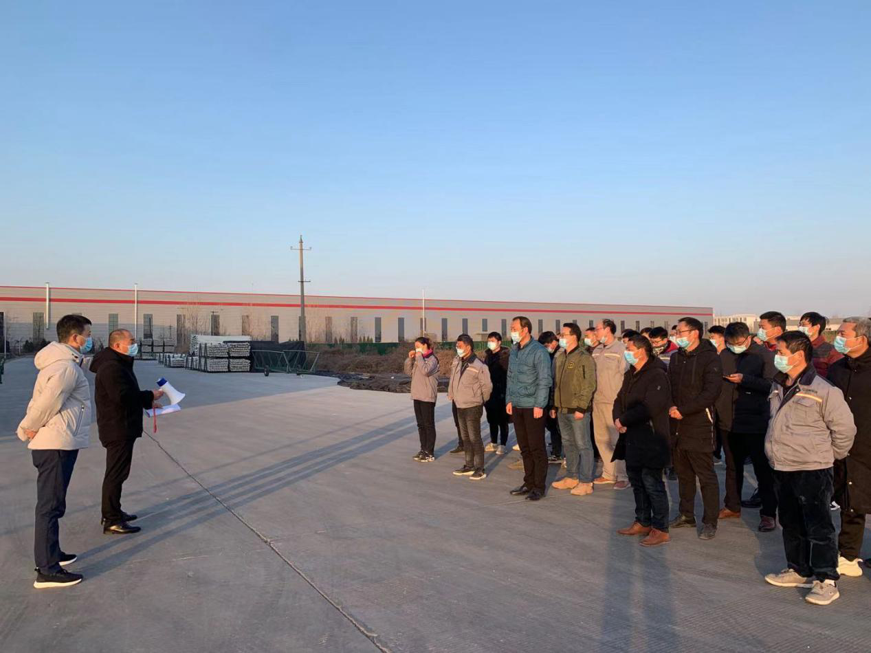 2020年12月24日上午8點10分,綜合管理部組織公司各部門負(fù)責(zé)人、生技部員工、倉儲部倉庫管理員、倉管員等其他人員在公司PO車間西門口集中列隊。